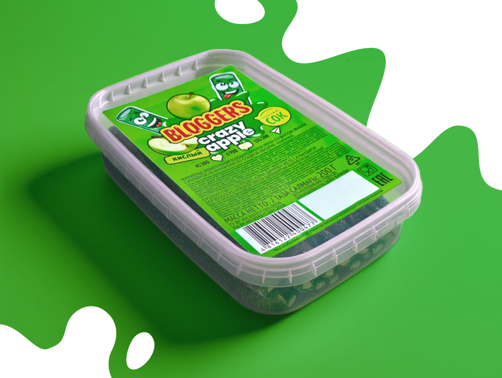 Мармелад "BLOGGERS" Крейзи Эйпл (трубочки в обсыпке) 200г
