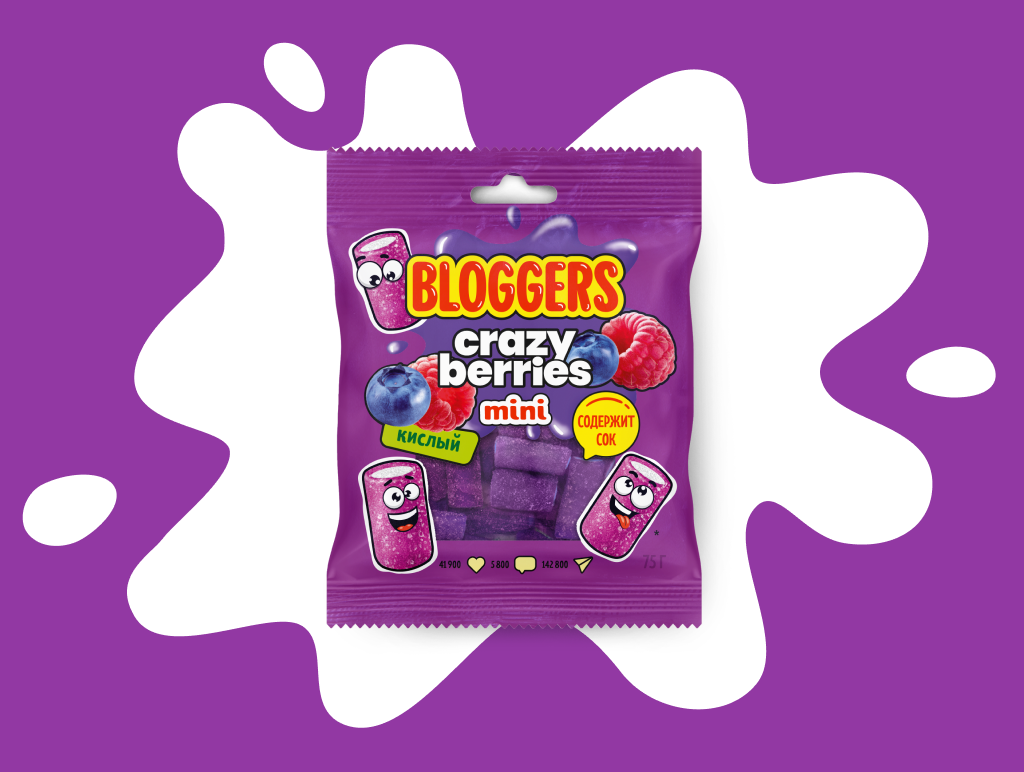 Мармелад "BLOGGERS" mini Крейзи Берриз (мини-трубочки в обсыпке) 75г