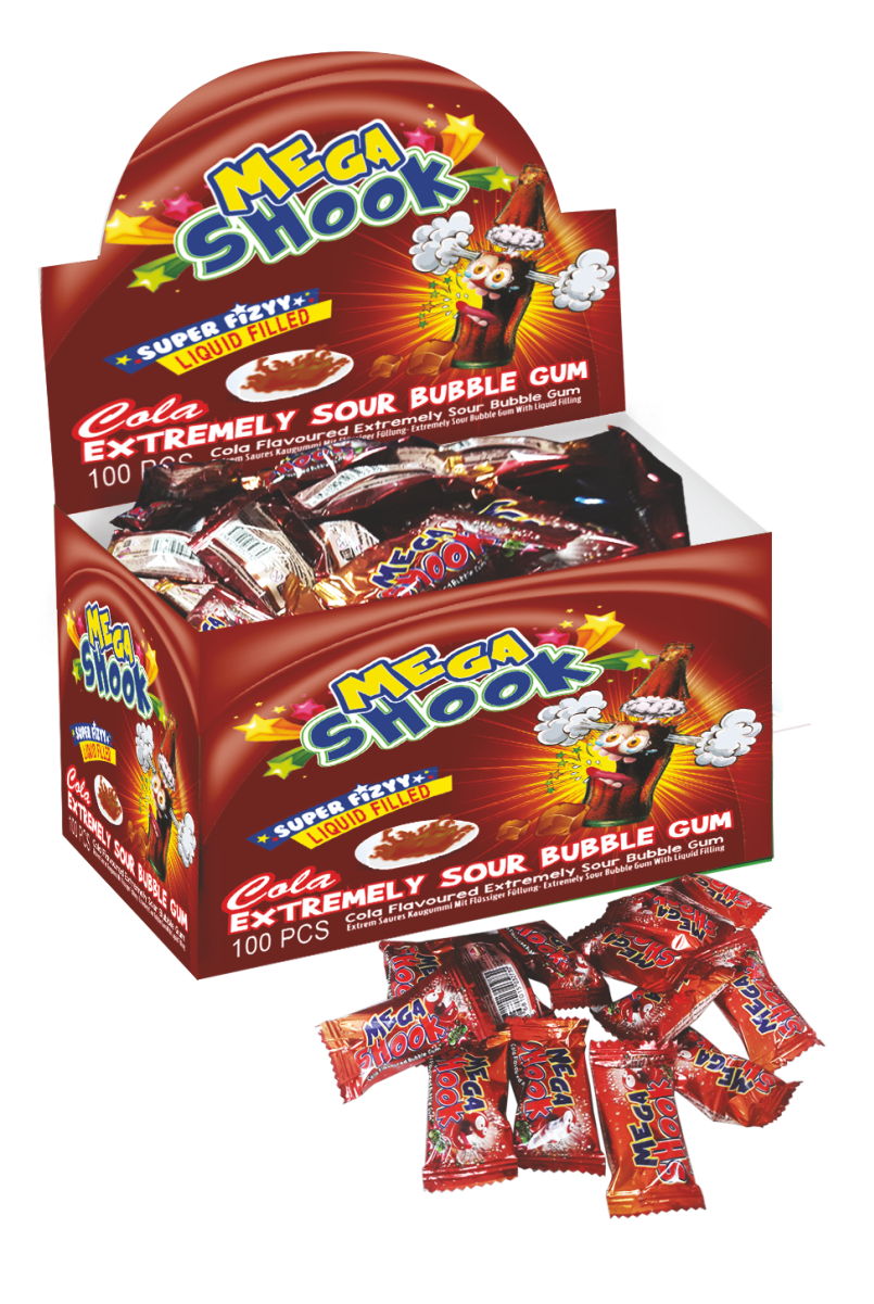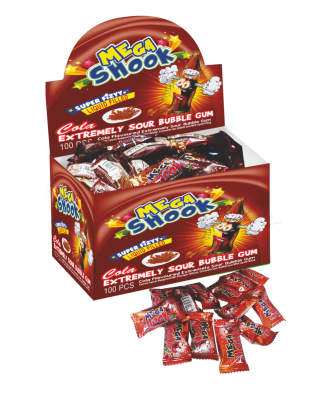 Жевательная резинка экстремально кислая со вкусом колы и жидким центром. Поставляется в шоу-боксе