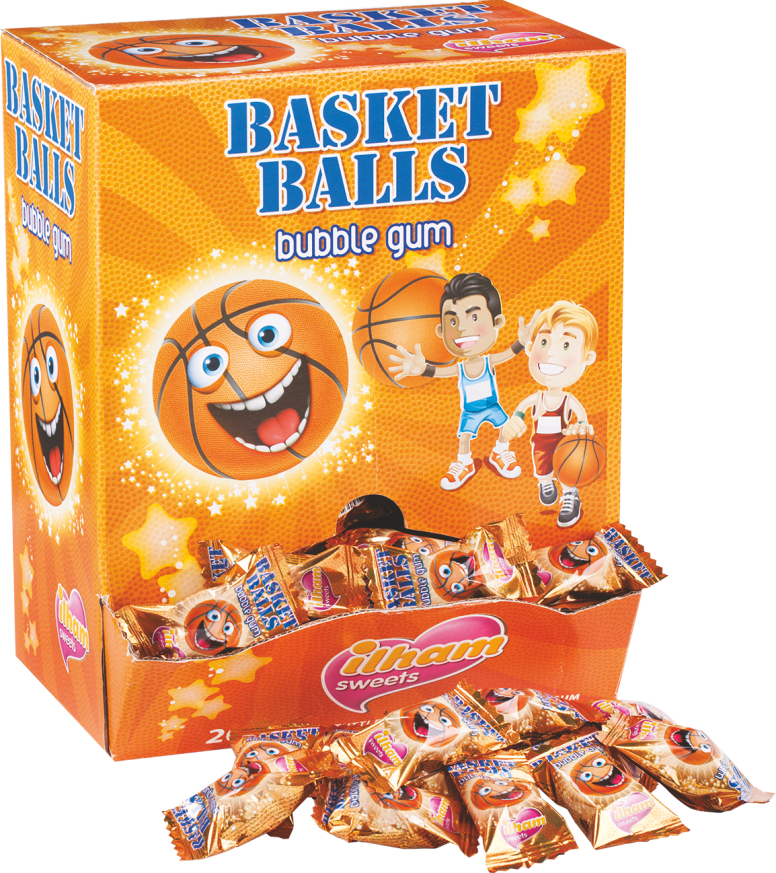 Жевательная резинка в виде баскетбольных мячей со вкусом тутти фрутти. Поставляется в шоу-боксе