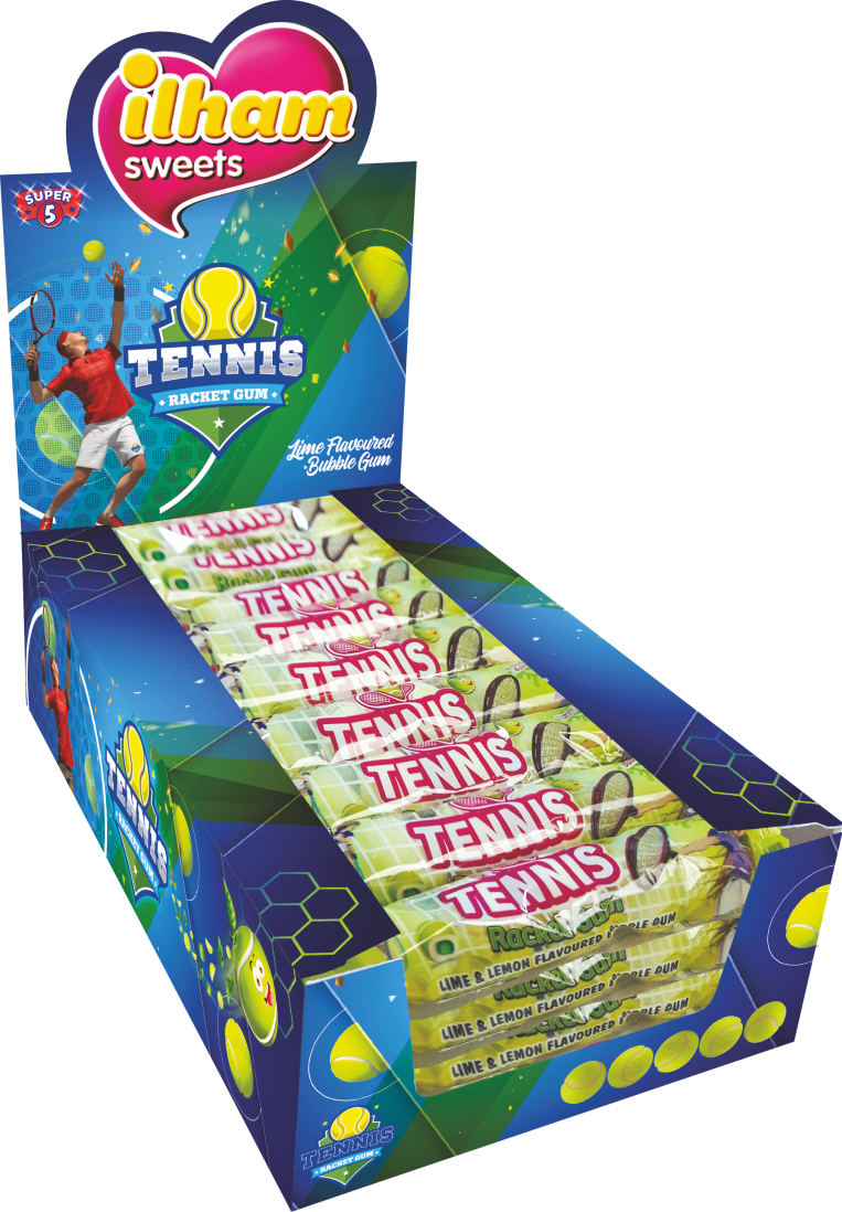 Жевательная резинка в виде теннисных мячей со вкусом лайма. Поставляется в шоу-боксе блистерами по 5 шт.