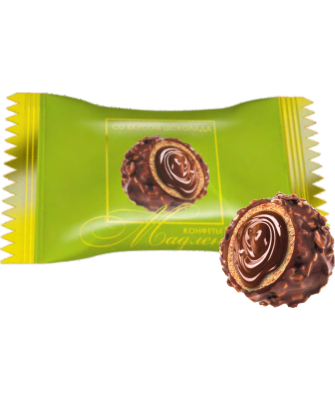 Глазированные хрустящие вафельные шарики с нежной пралиновой начинкой с шоколадным вкусом, декорированные вафельной крошкой