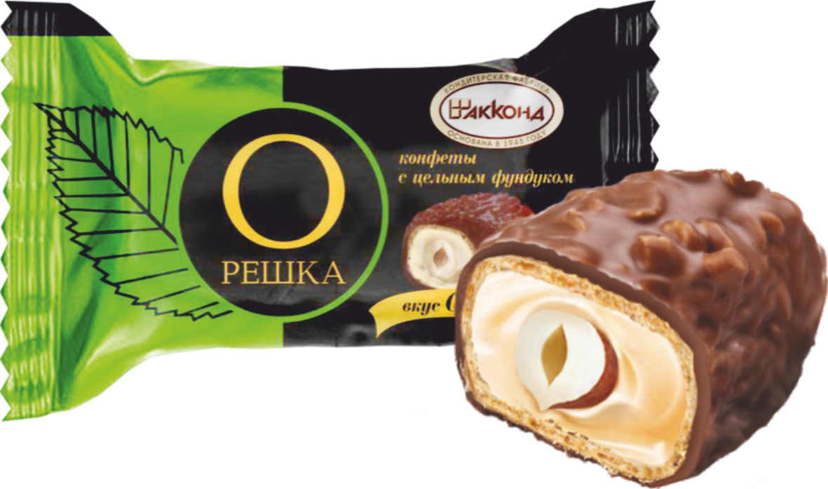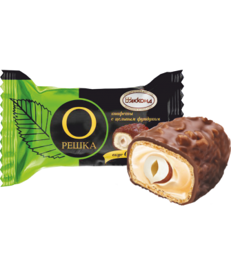 Глазированная конфета в вафельном корпусе с цельным лесным орехом и нежной кремовой сливочной начинкой. Упаковка флоу-пак