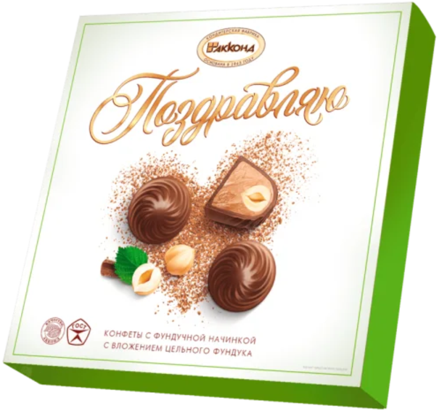 Подарочный вариант конфет с фундучной начинкой и  цельным фундуком внутри. Конфеты премиум-класса
