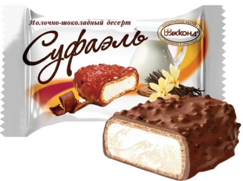 Десерт в глазированном вафельном корпусе со сливочным суфле и обсыпке воздушного риса