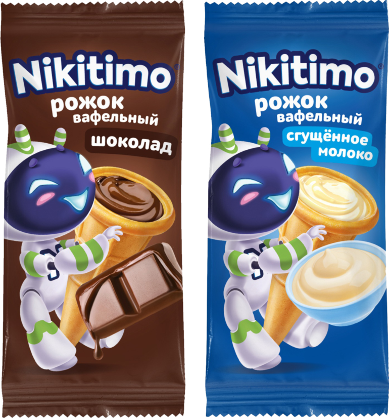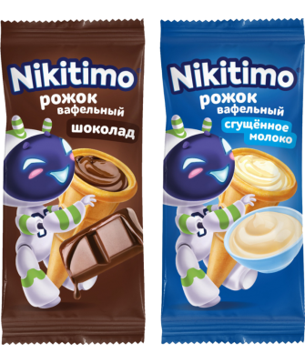 Хрустящие вафельные рожки с шоколадной начинкой и с начинкой со вкусом сгущенного молока