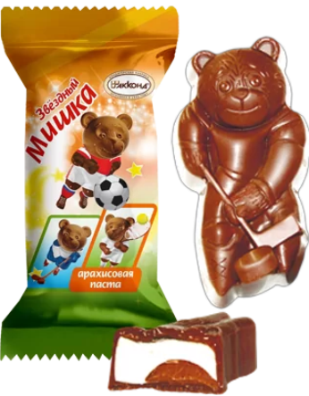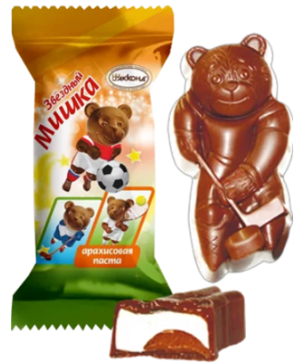 Эксклюзивная конфета с натуральной арахисовой начинкой глазированная нежным молочным шоколадом. Богаты белком!!! Сделаны по ГОСТ. Упаковка флоу-пак. Конфеты «Звездный мишка» имеют диплом лауреата конкурса и ГРАН-ПРИ «Лучший продукт» в 2018 году