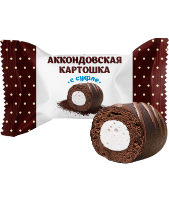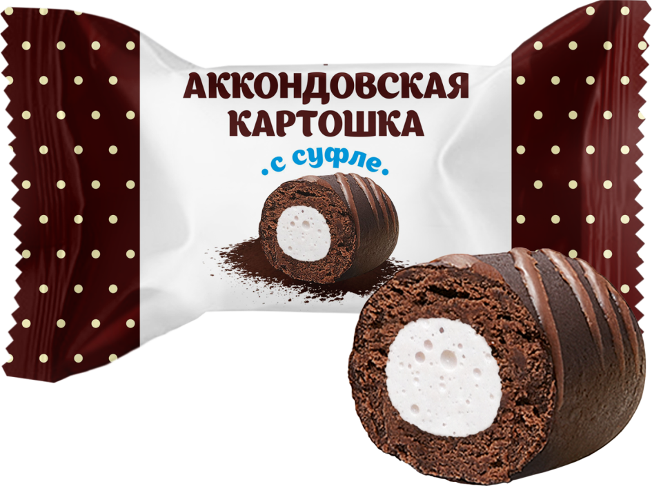 Конфеты декорированные на основе бисквитной массы с суфле внутри. Упаковка флоу-пак