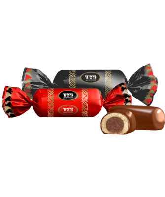 Идеальное сочетание бисквитного тоффи с шоколадным тоффи-кремом покрытых темной глазурью. Микс красного и черного фантиков