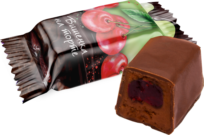 Глазированные конфеты с нежным помадным корпусом с какао с ароматной начинкой со вкусом ромовой вишни