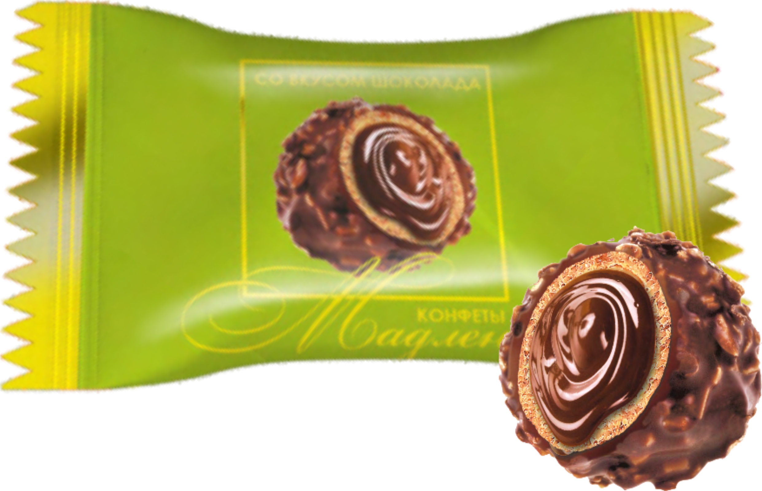 Глазированные хрустящие вафельные шарики с нежной пралиновой начинкой с шоколадным вкусом, декорированные вафельной крошкой
