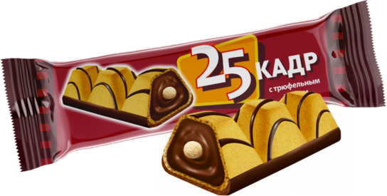 Хрустящая конфета типа полая вафля с декорированным донышком и начинкой с трюфельным вкусом