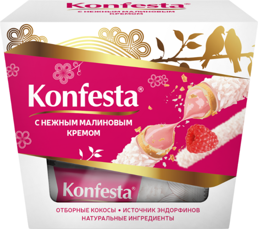 Конфеты с кокосовым кремом в хрустящей вафле и обсыпке кокосовой стружки и вкусом малины