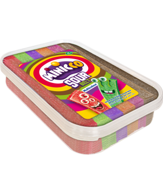 Мармелад в виде ремешков разного цвета со вкусами кола, клубника, апельсин, яблоко, ежевика, арбуз в кислой обсыпке