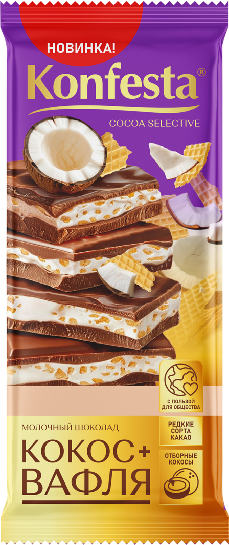 Шоколад "KONFESTA" молочный кокос+вафля 80г