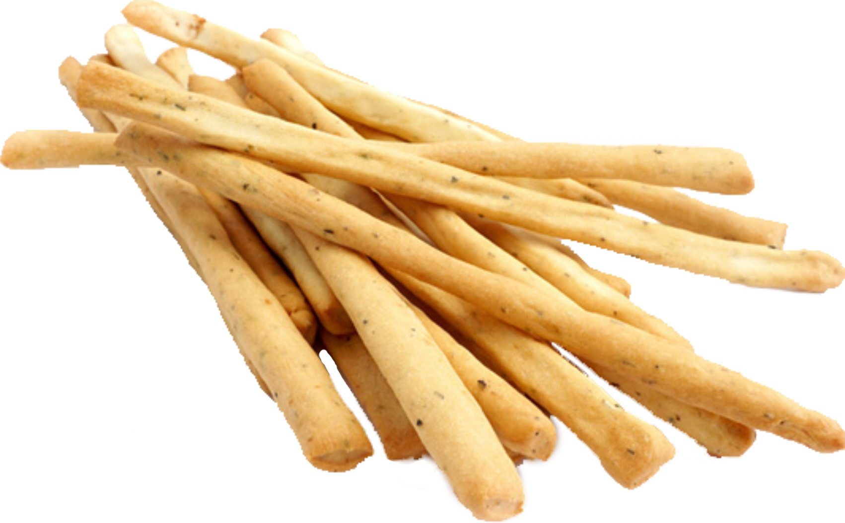 Легкие и хрустящие хлебные палочки произведены по традиционной итальянской технологии с натуральным жаренным луком. Гриссини длиннее (15-20 см) и больше в диаметре, чем хлебная палочка (примерно в 1,5-2 раза). Они имеют более воздушное и хрустящее тесто напоминая хлебную корочку. Гриссини, как правило, употребляются перед основным блюдом и вместе с ним как хлеб. Постный продукт. Поставляется в коробе типа "телевизор"