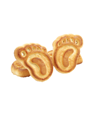 Печенье со вкусом и ароматом сгущенного молока в форме отпечатка детской ступни