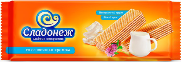 Хрустящие воздушные вафли с лёгким кремом с натуральными сливками в яркой упаковке флоу-пак. Улучшенная рецептура! Сделаны по ГОСТ 14031-2014