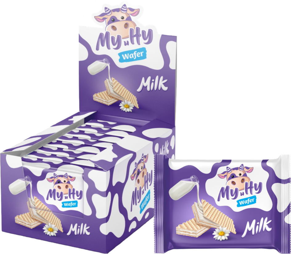 Хрустящие воздушные 5-слойные вафли с молочной начинкой в яркой упаковке флоу-пак и шоу-боксе. Производятся на уникальной австрийской линии. Доля натуральных молочных продуктов в начинке более 30%. Сделаны по ТУ 9137-001-00351231-2014. В составе: молоко цельное*, сыворотка молочная, молоко обезжиренное.