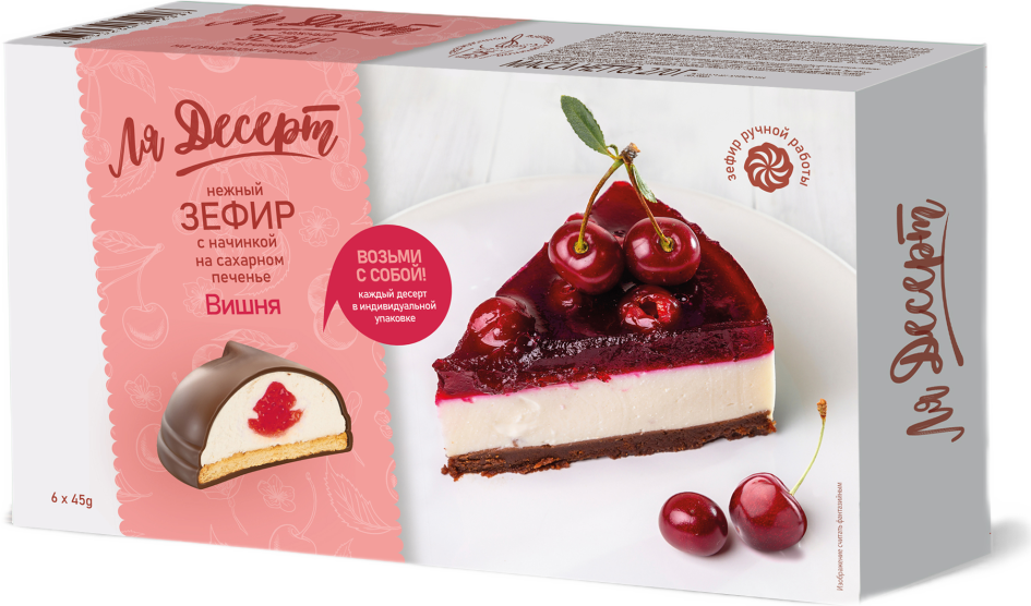 Воздушный зефир с вишневой начинкой на нежном печенье в индивидуальной упаковке флоу-пак