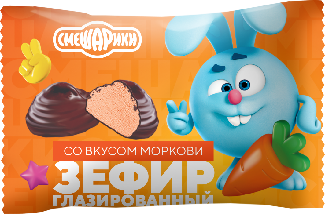 Глазированный зефир со вкусом моркови в яркой индивидуальной упаковке