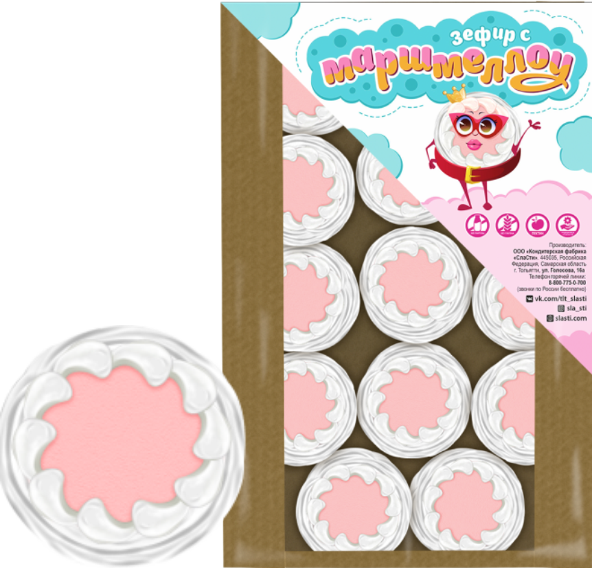 Уникальное сочетание нежного воздушного зефира необычной формы и тягучего маршмеллоу со вкусом малины. Мягкий, воздушный в меру сладкий вкус с легкой кислинкой