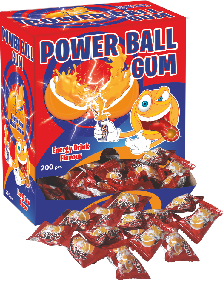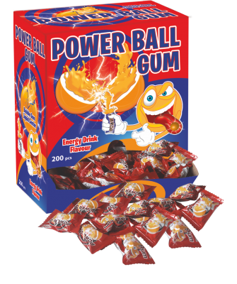 Жевательная резинка со вкусом энергетика с жидким центром. Поставляется в шоу-боксе