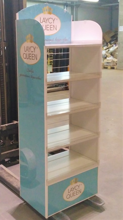Брендированная стойка позволяет разместить как продукцию одного бренда, так и различные линейки продукции в зависимости от сюжета.