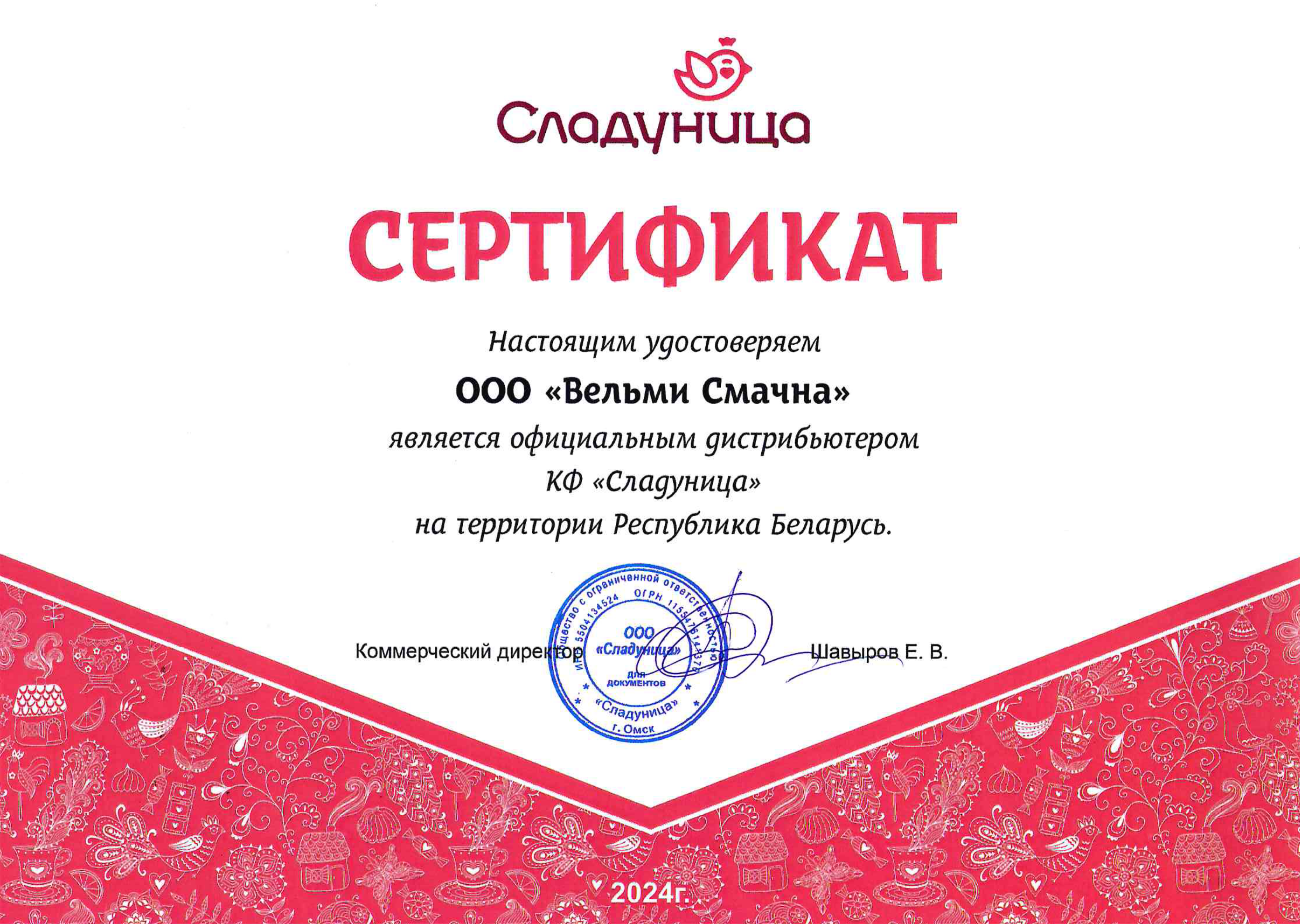 ООО "Вельми Смачна" - является официальным дистрибьютором КФ "Сладуница" на территории Республики Беларусь